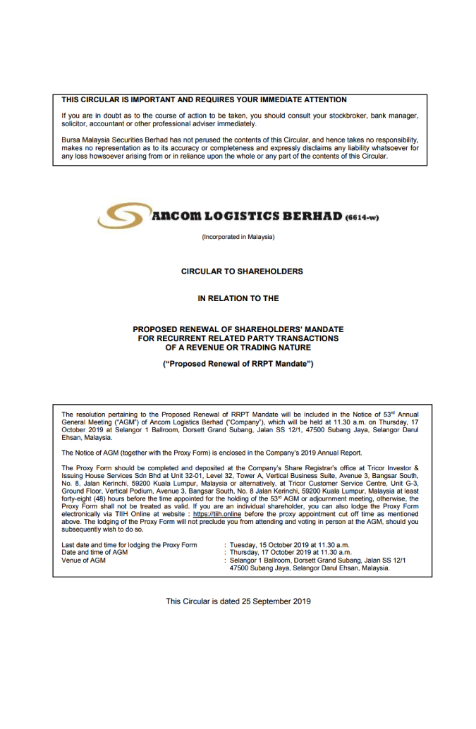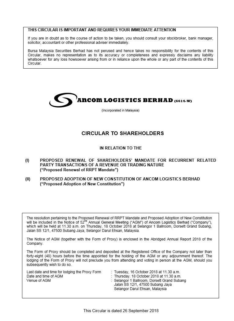 Circular to Shareholders