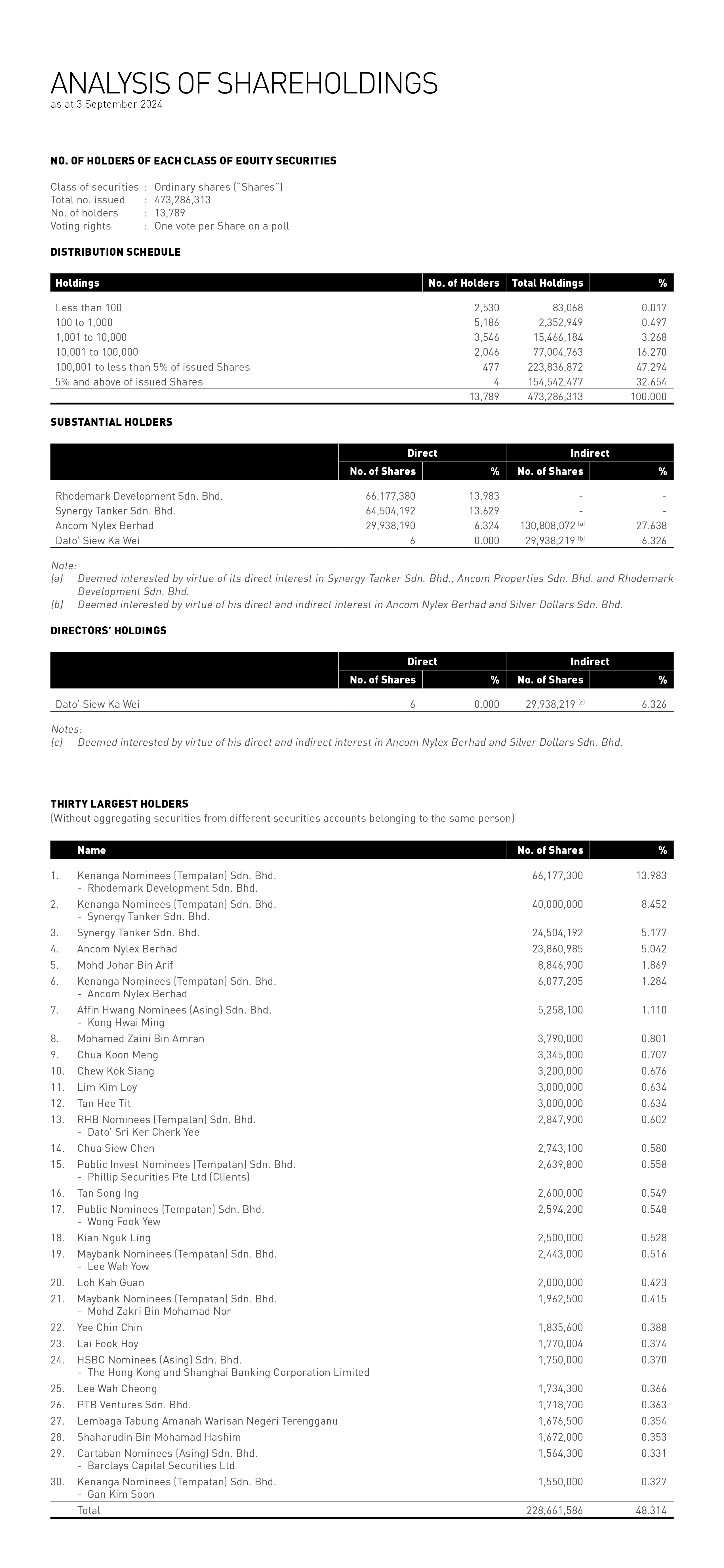 ANALYSIS OF SHAREHOLDINGS