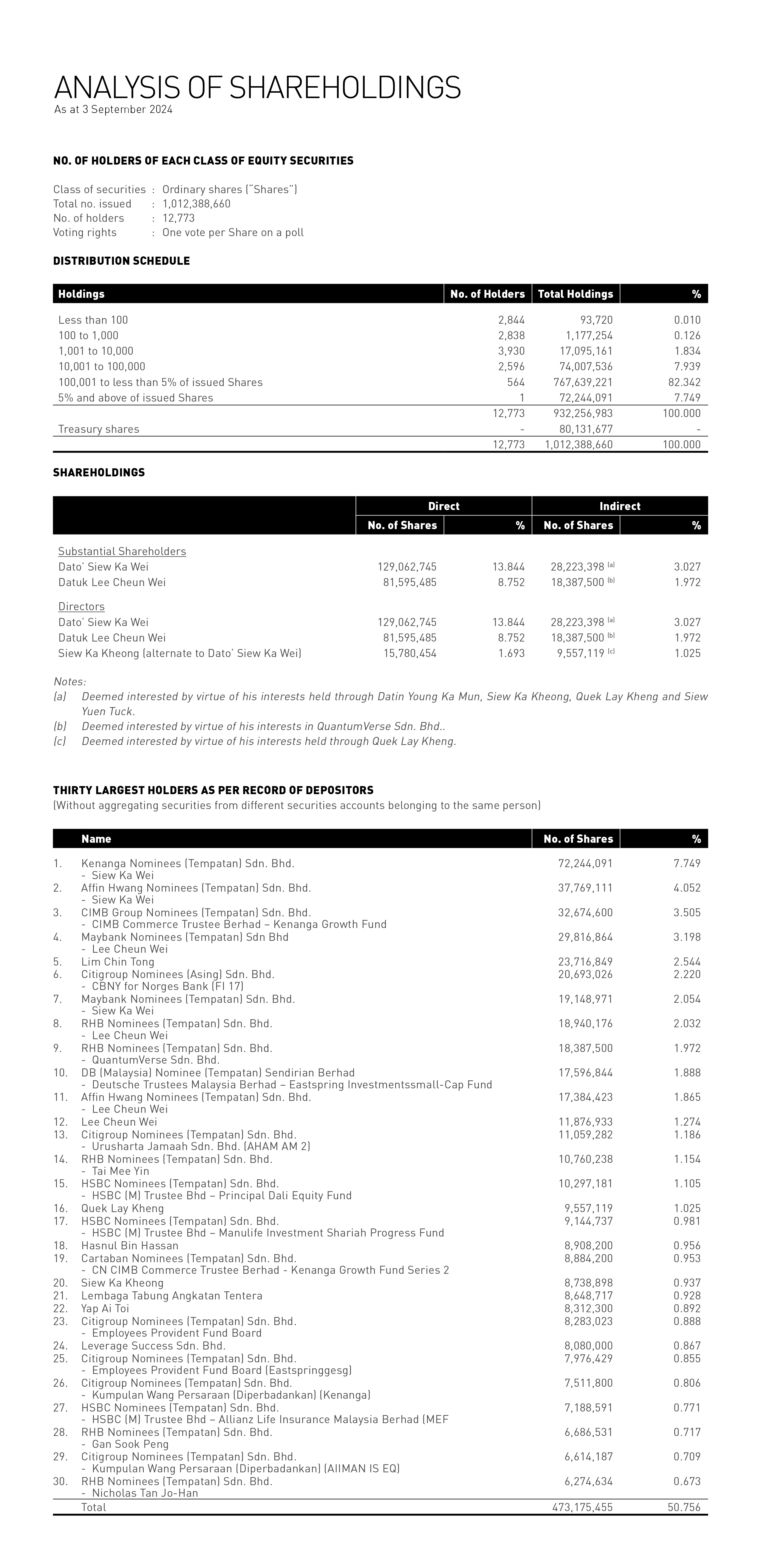 SHAREHOLDINGS