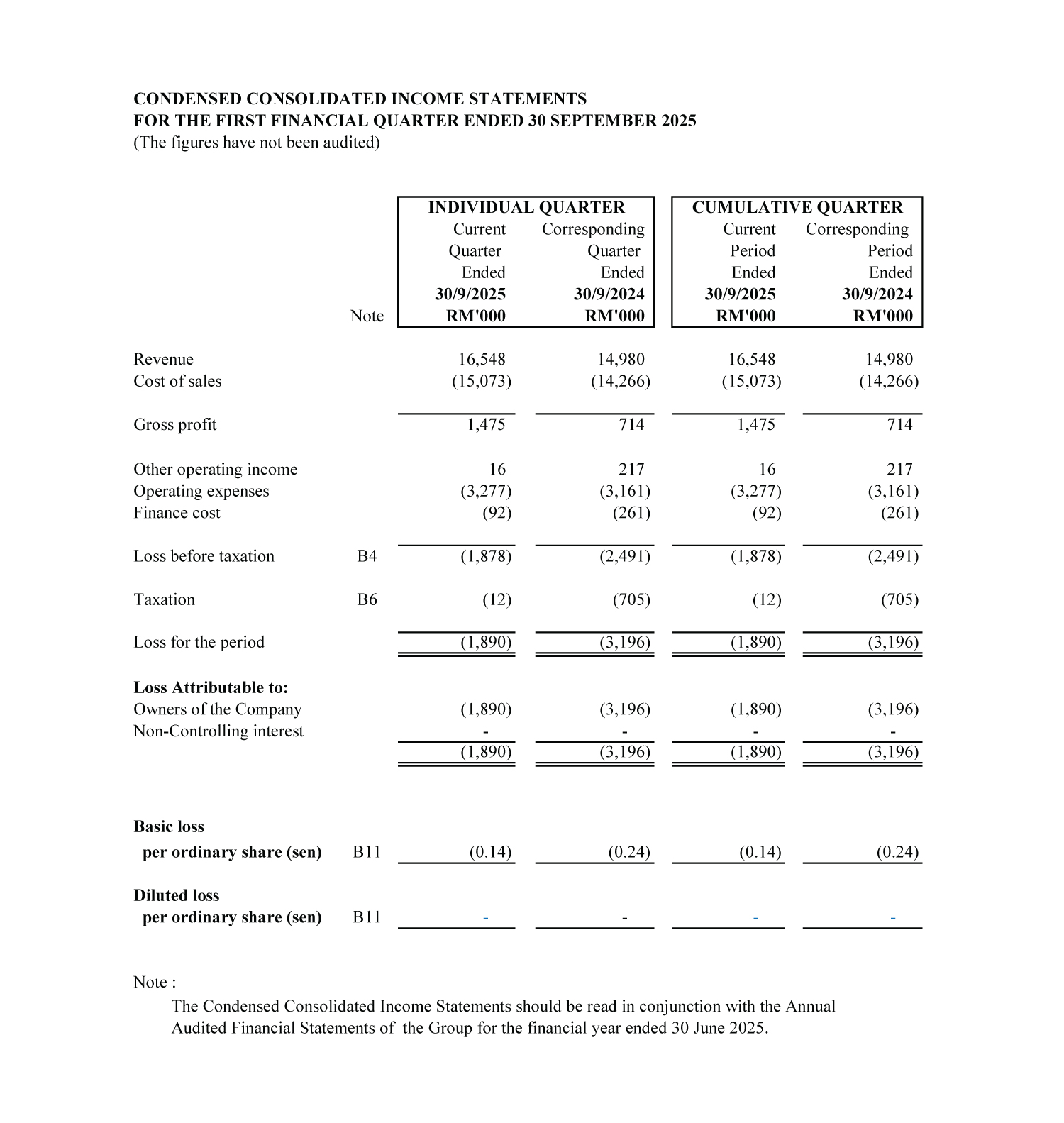 Latest Quarterly Results