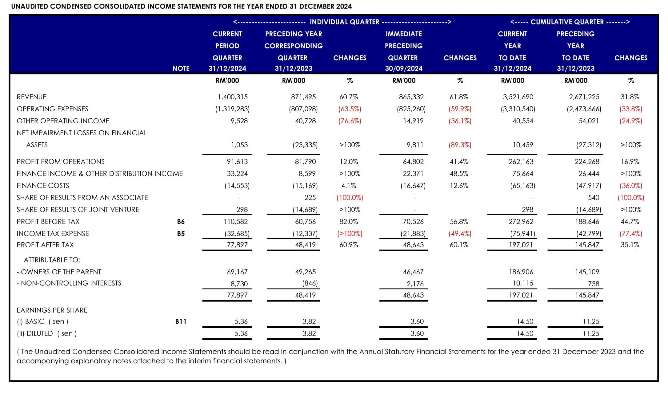 UNAUDITED CONDENSED CONSOLIDATED FINANCIAL STATEMENTS FOR THE PERIOD ENDED 31 DECEMBER 2024